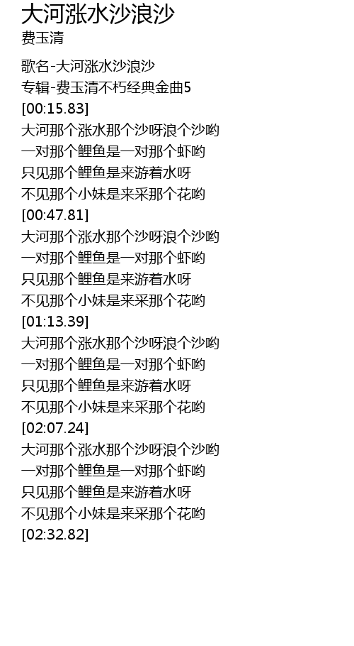 [02:11.45] 大河那个涨水那个沙呀浪个沙哟