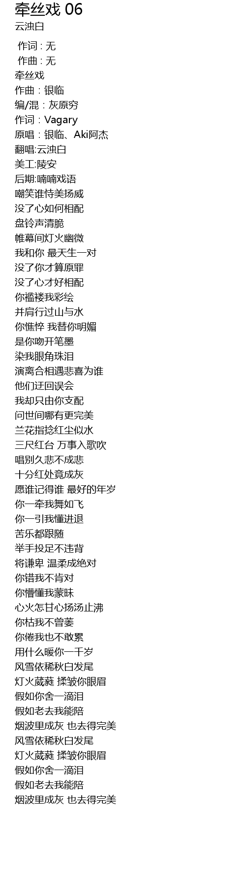 | [00:04.949] | 原唱:银临、Aki阿杰 |