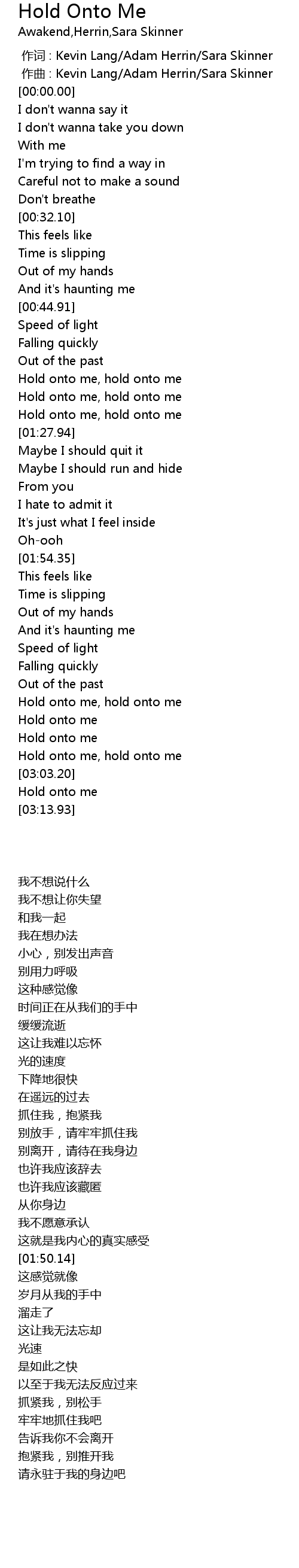 | [02:33.18] | Hold onto me |