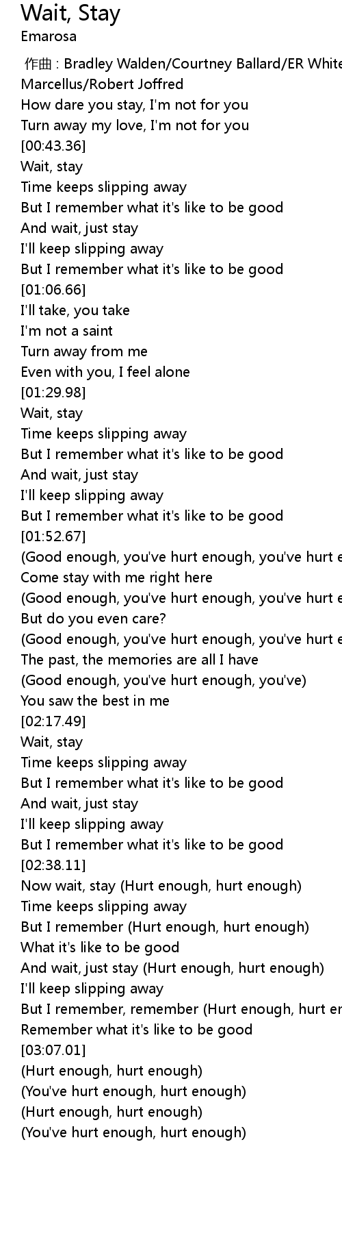 | [02:50.95] | And wait, just stay (Hurt enough, hurt enough) |