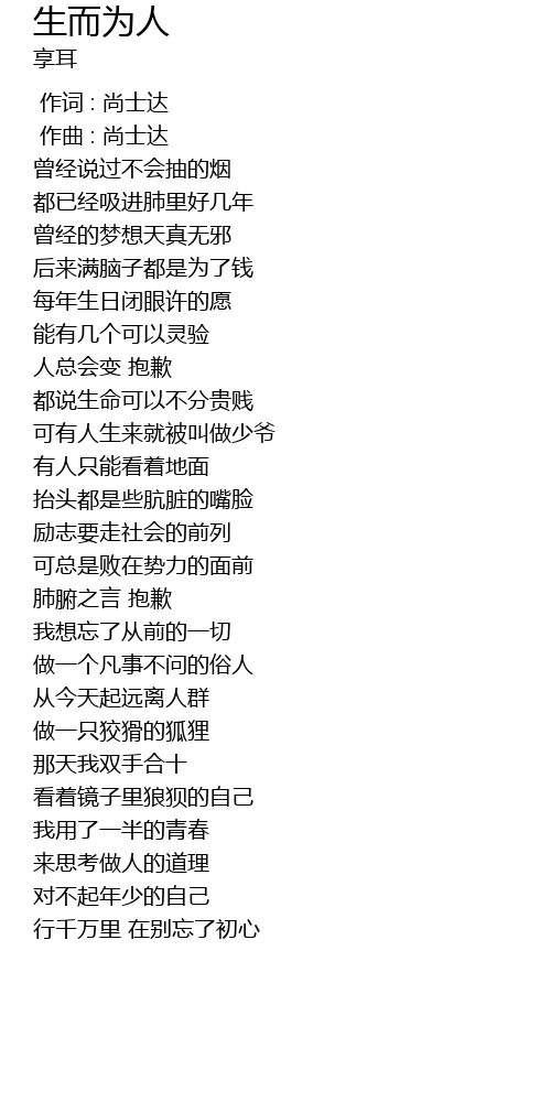| [00:00.000] | 作词 : 尚士达 |