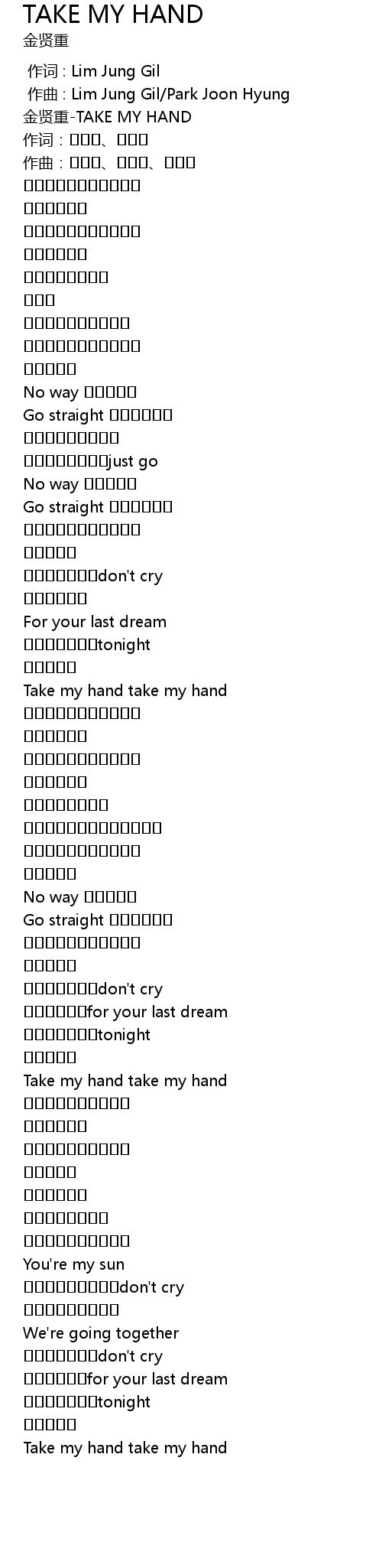 | [00:00.292] | jīn xián zhòng TAKE MY HAND |