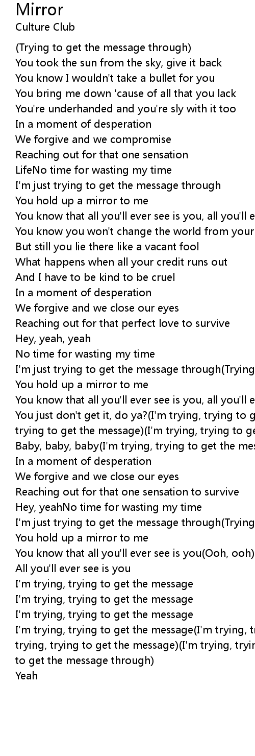 I'm trying, trying to get the message(I'm trying, trying to get the message)(I'm trying, trying to get the message)(I'm trying, trying to get the message)(Trying to get the message through) |