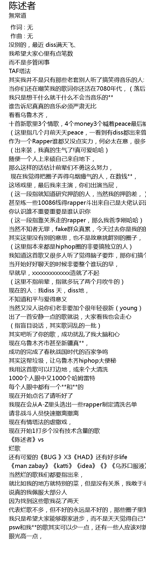 | [01:53.70] | 其实这帮垃圾,让乌鲁木齐hiphop大便秘 |