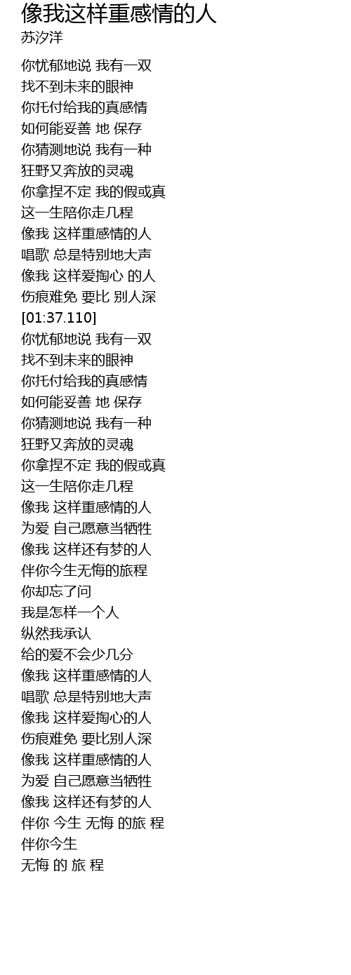 | [03:39.590] | xiàng wǒ zhè yàng zhòng gǎn qíng de rén |
