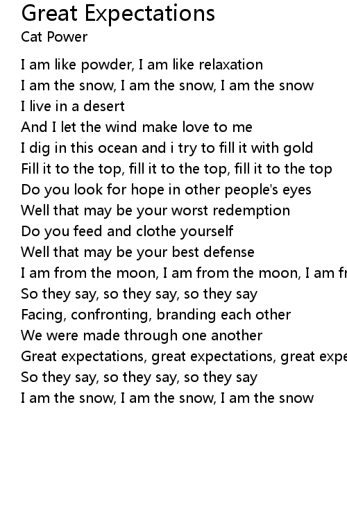 | Great expectations, great expectations, great expectations | |