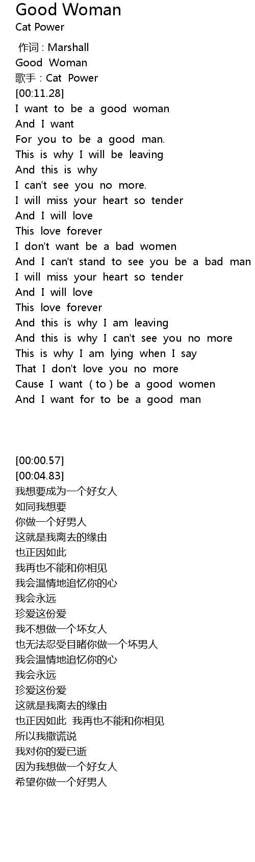 | [00:38.51] | I want to be a good woman |