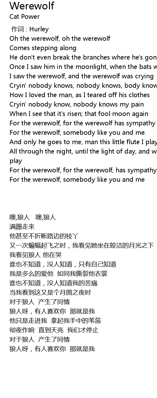 | [02:01.400] | For the werewolf, for the werewolf has sympathy |