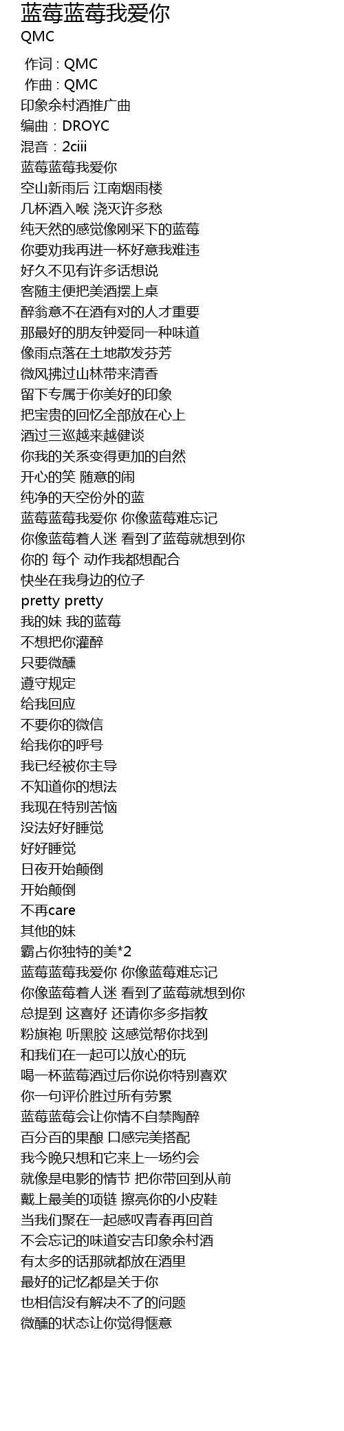 | [02:30.966] | 你像蓝莓着人迷 看到了蓝莓就想到你 |