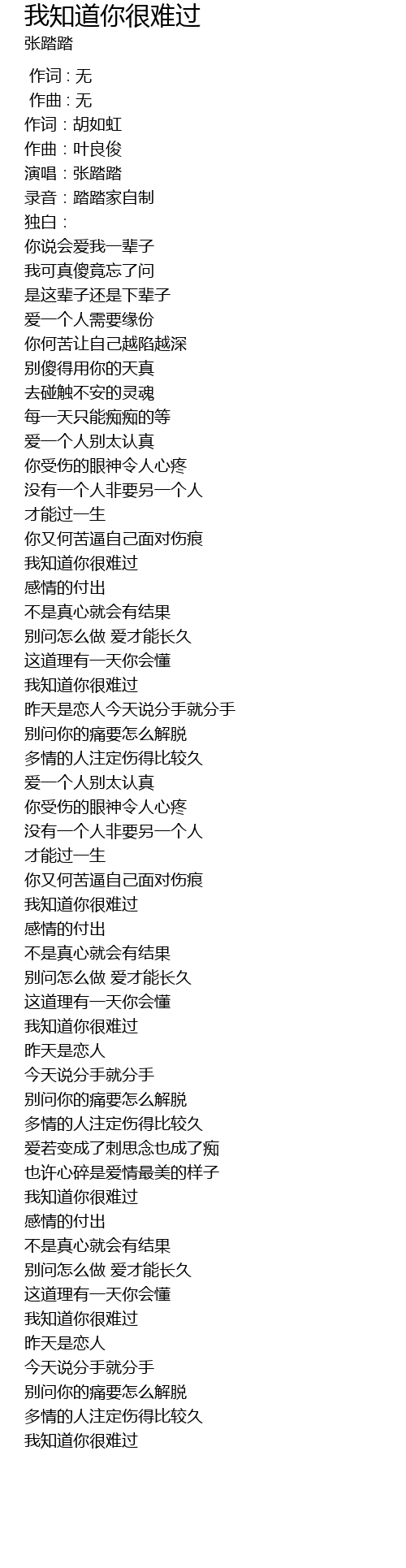 | [00:06.679] | 演唱:张踏踏 |