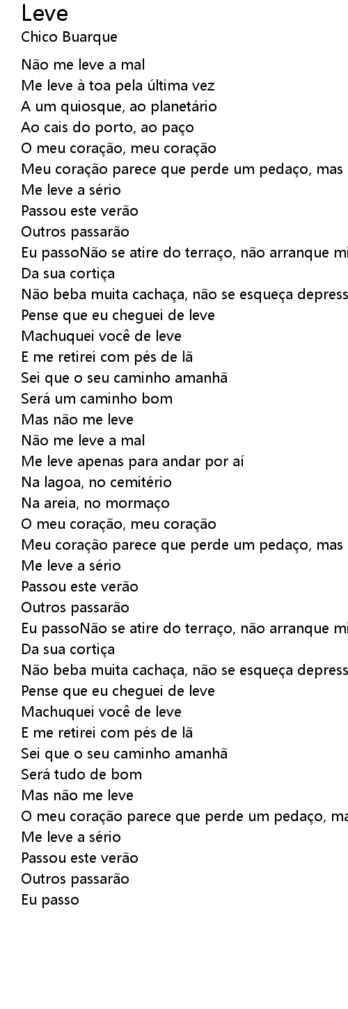 | Não beba muita cachaça, não se esqueça depressa de mim, sim? | |