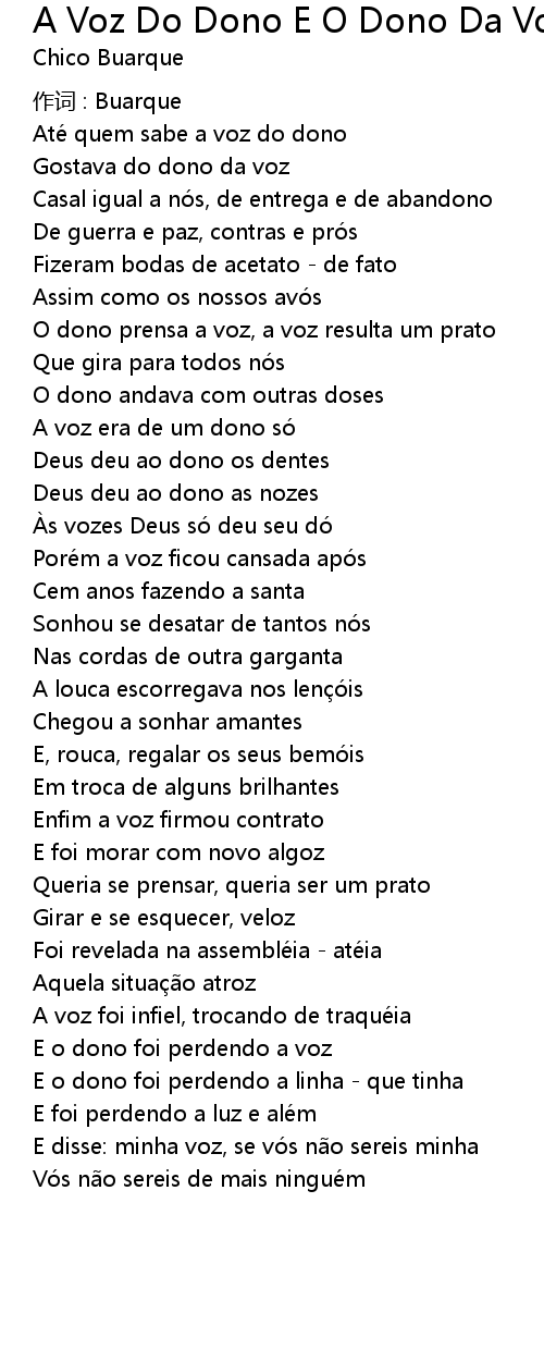 | Song | A Voz Do Dono E O Dono Da Voz |