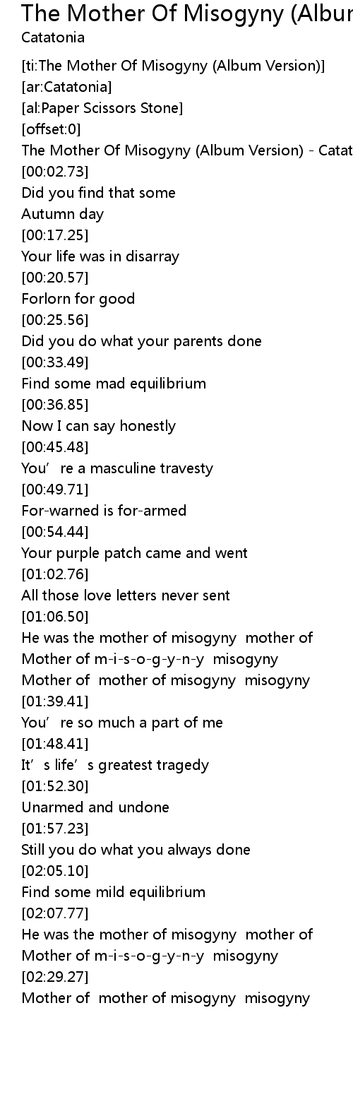 | [01:28.54] | Mother of mother of misogyny misogyny |