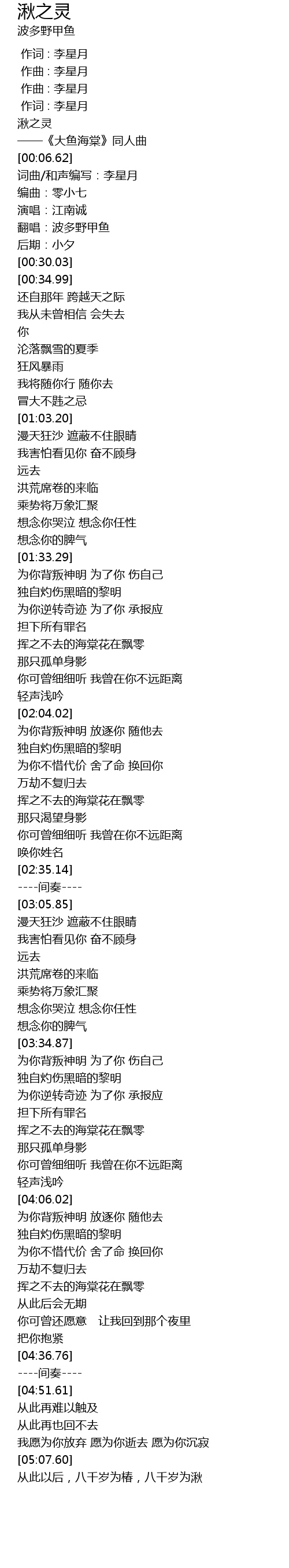| [00:05.24] | ——《大鱼海棠》同人曲 |