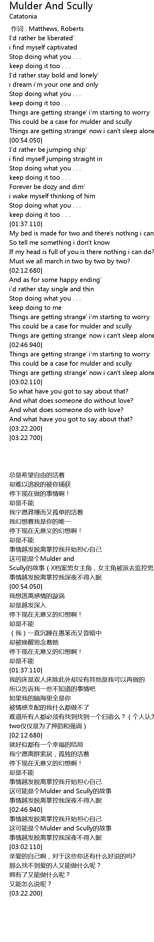 | [02:56.680] | Things are getting strange' now i can' t sleep alone |