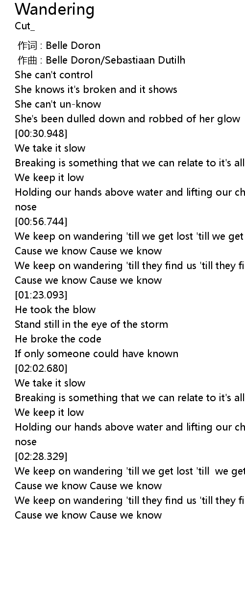 | [00:57.117] | We keep on wandering ' till we get lost ' till we get lost |