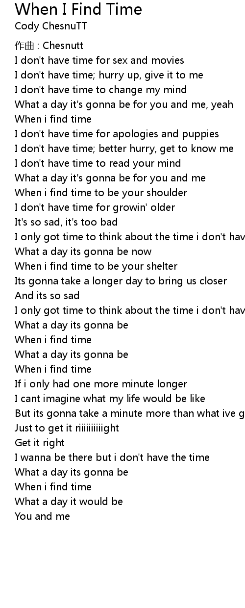 | Song | When I Find Time |