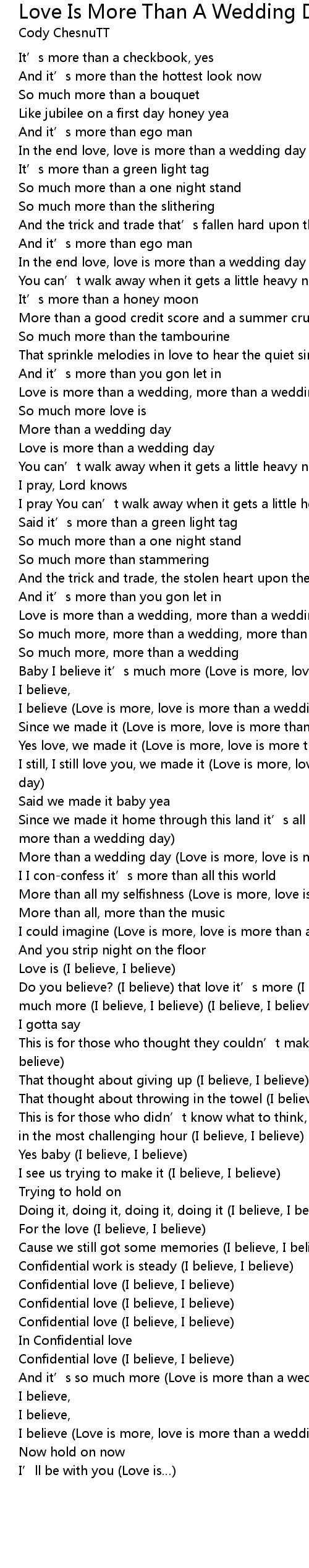 | Baby I believe it' s much more Love is more, love is more than a wedding day | |