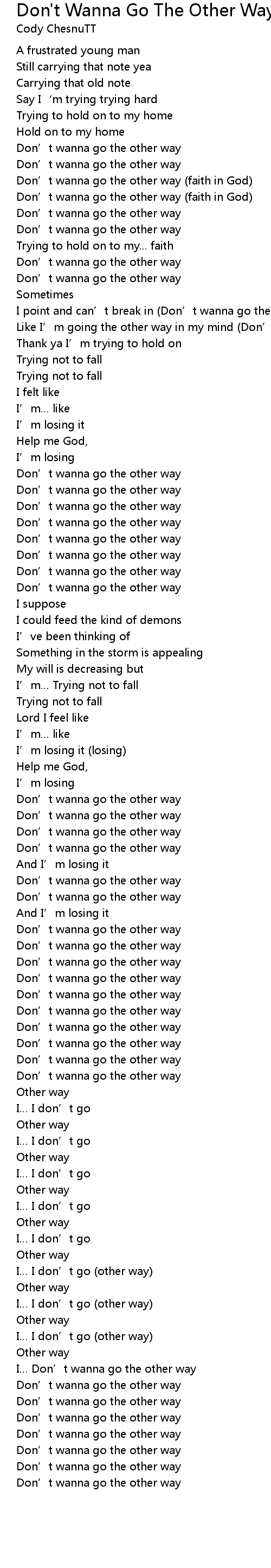 | Like I' m going the other way in my mind Don' t wanna go the other way | |