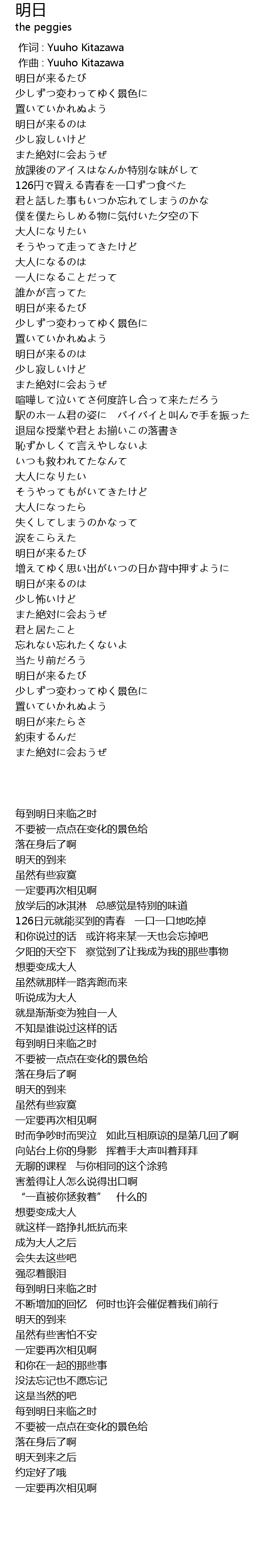 | [00:00.000] | zuo ci : Yuuho Kitazawa |