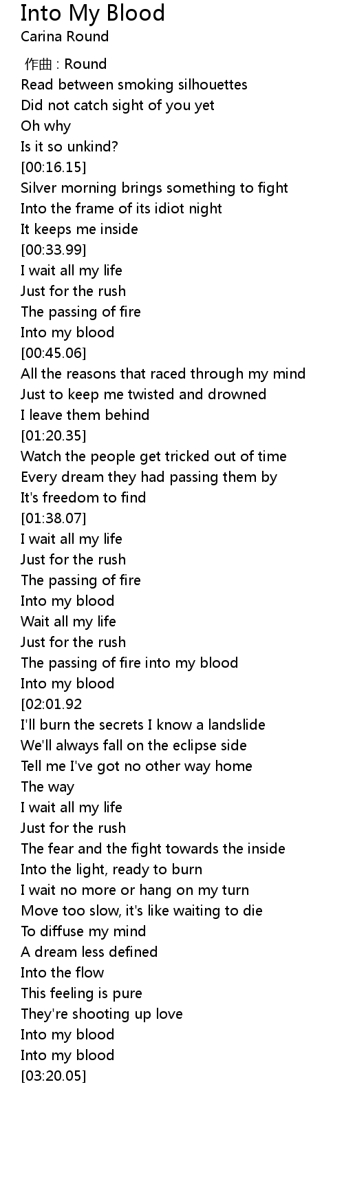| [01:46.20] | Into my blood |