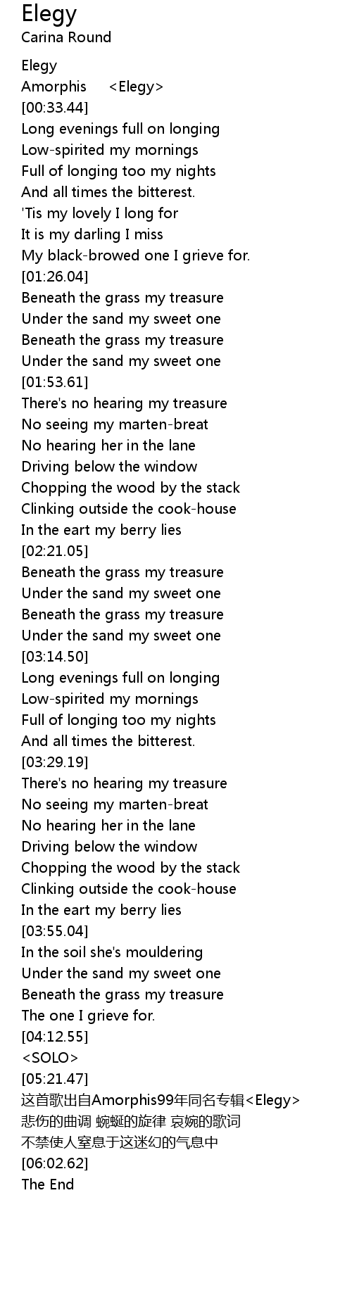 | [05:35.24] | 这首歌出自Amorphis99年同名专辑<Elegy> |