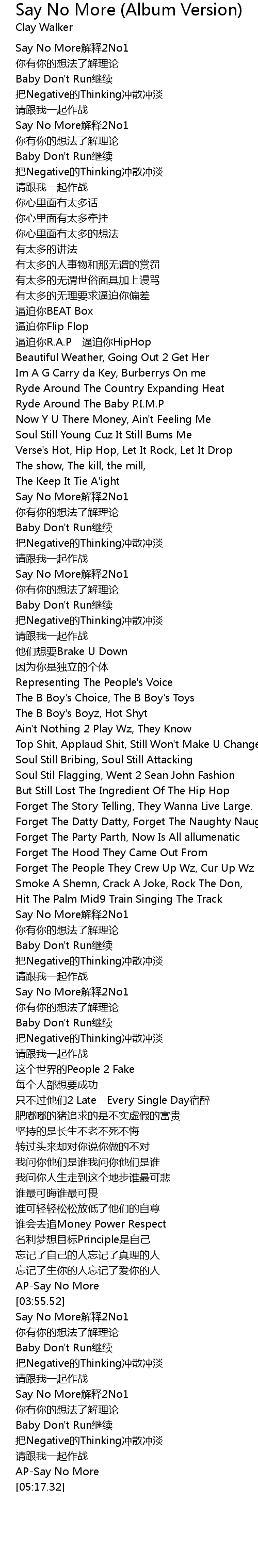 | [01:11.47] | Say No More jiě shì 2No1 |