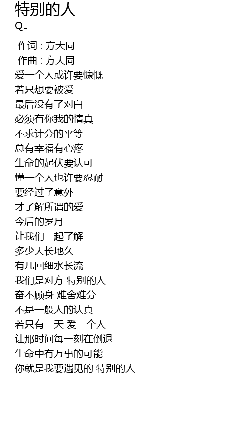 | [01:08.182] | 我们是对方 特别的人 |
