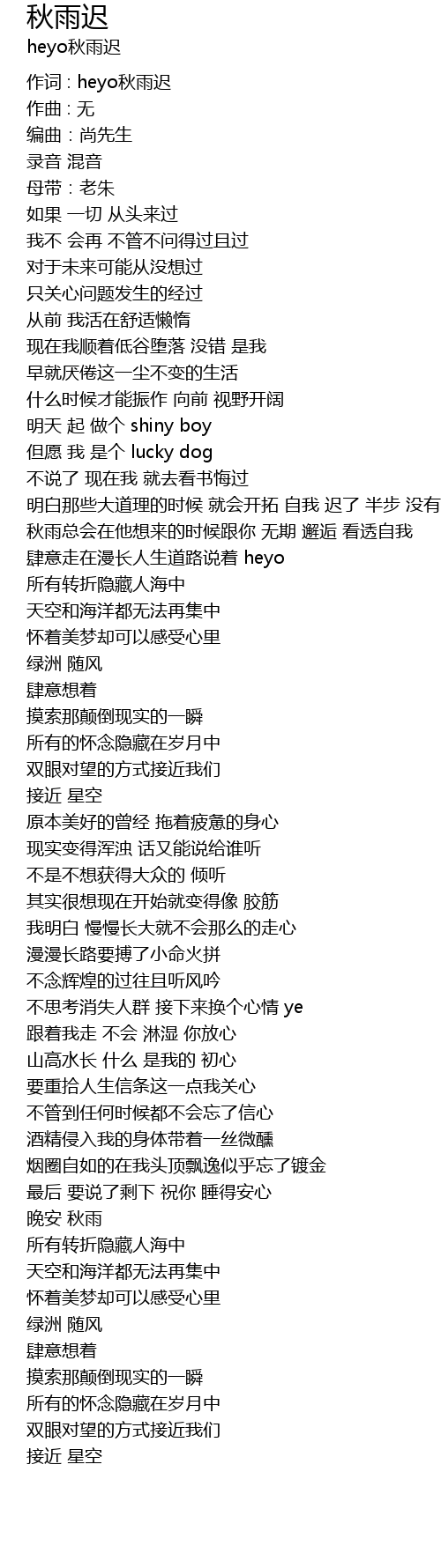 | 作词 : heyo秋雨迟 | |