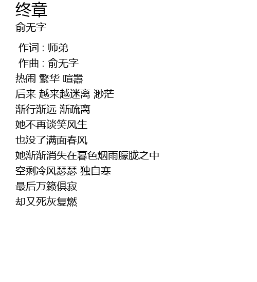 | [00:01.000] | 作曲 : 俞无字 |