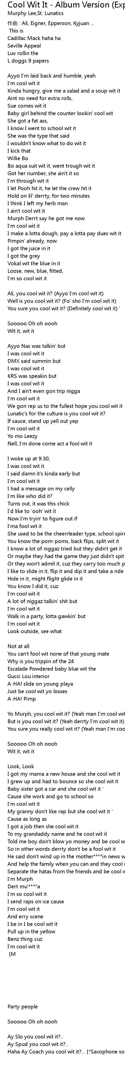 | Well is you cool wit it? (Fo' sho I'm cool wit it) | |