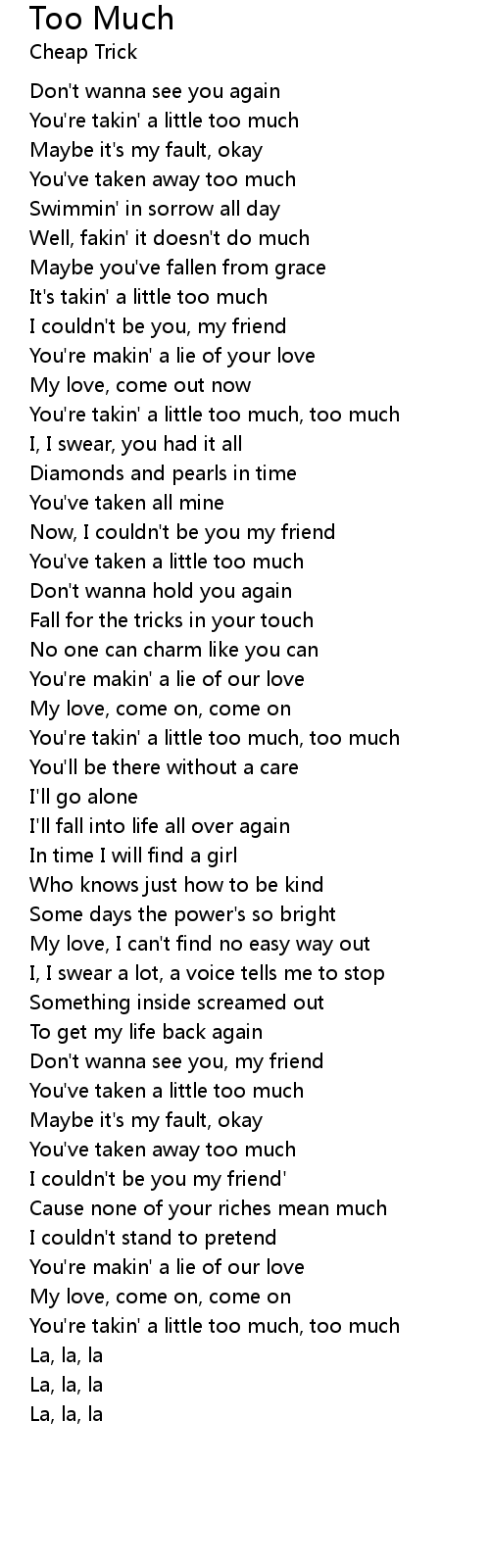 You're takin' a little too much, too much |
