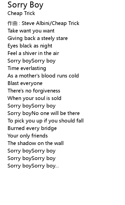 | Sorry boySorry boy | |