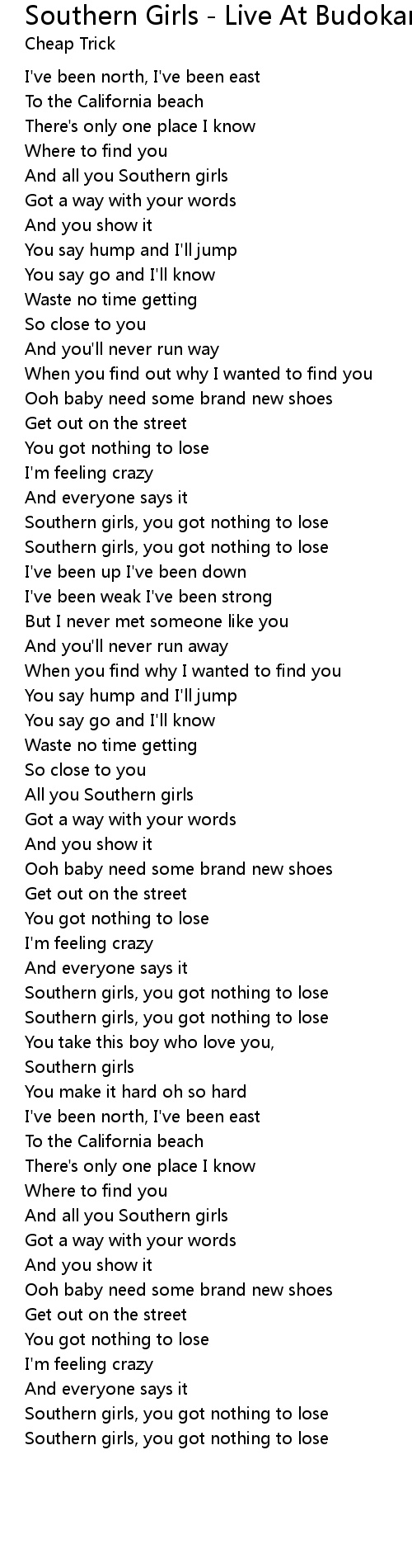 Southern Girls - Live At Budokan: The Complete Concert Lyrics