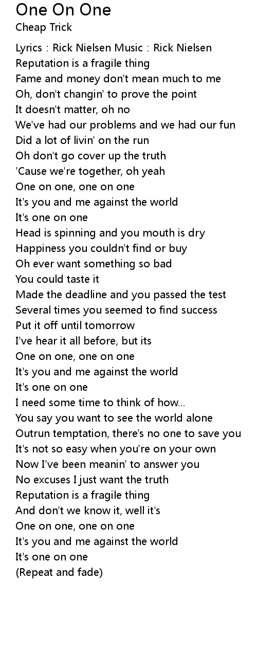 | One on one, one on one | |