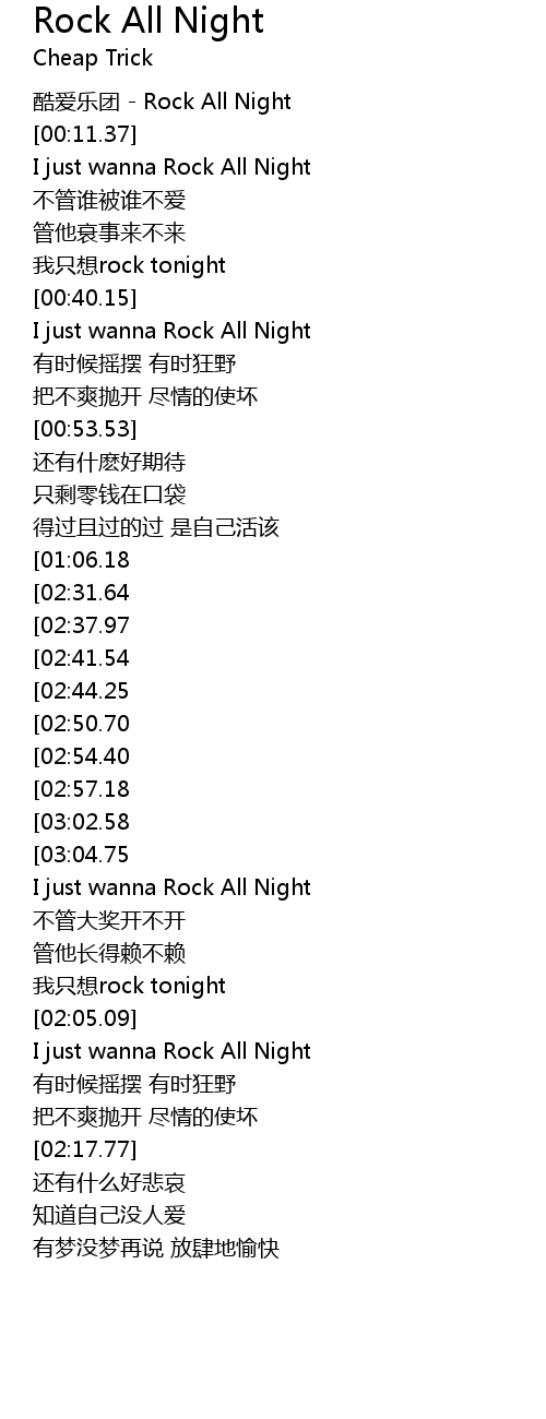 | [00:00.16] | 酷爱乐团 - Rock All Night |