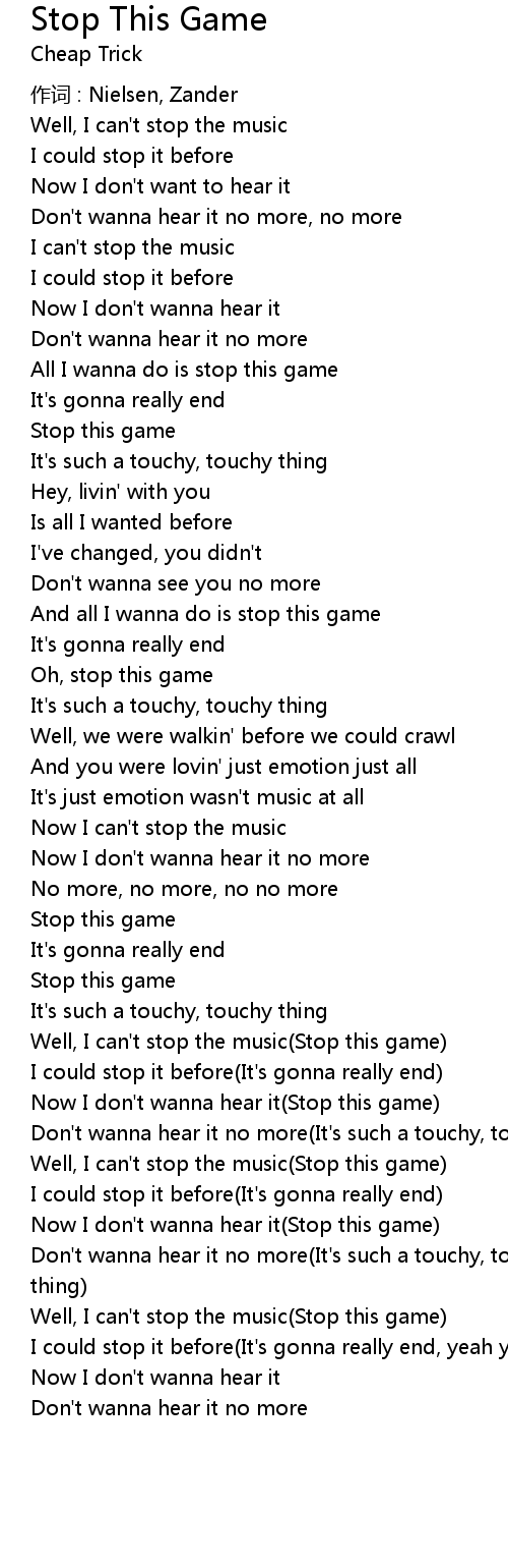 | Well, I can' t stop the music Stop this game | |