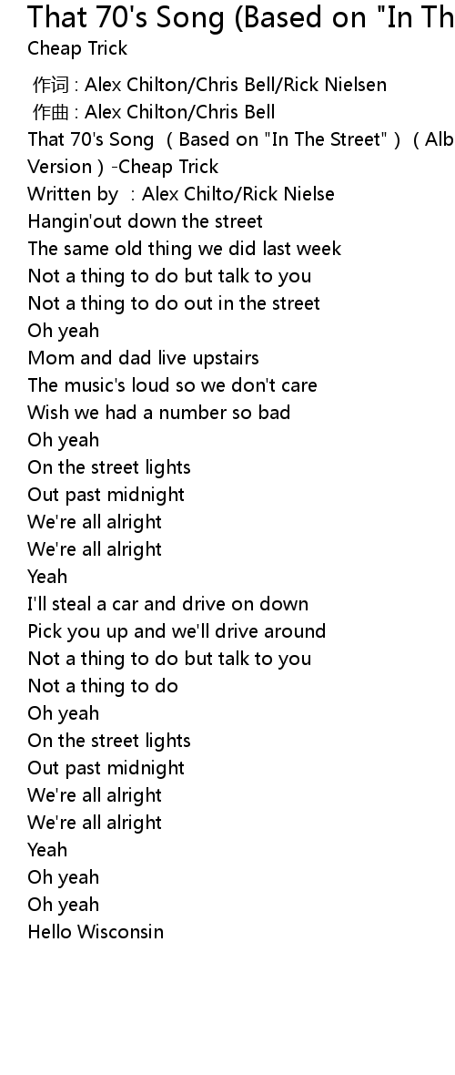 | [00:00.146] | That 70' s Song Based on " In The Street" Album Version Cheap Trick |