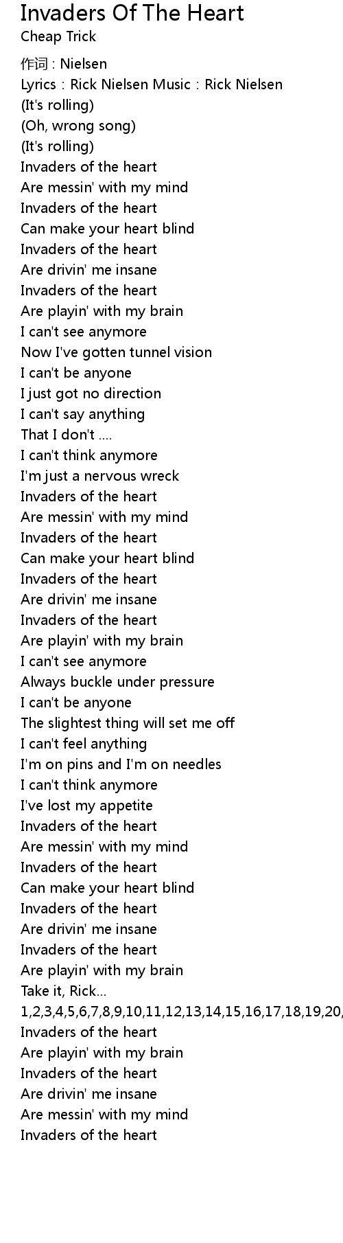 | Lyrics:Rick Nielsen Music:Rick Nielsen | |