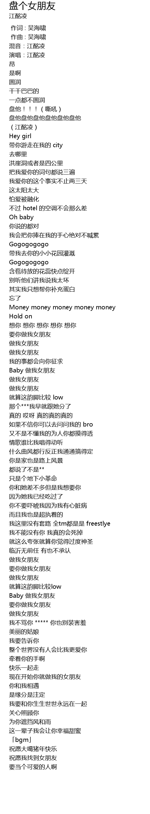 | [01:08.934] | Baby zuò wǒ nǚ péng yǒu |