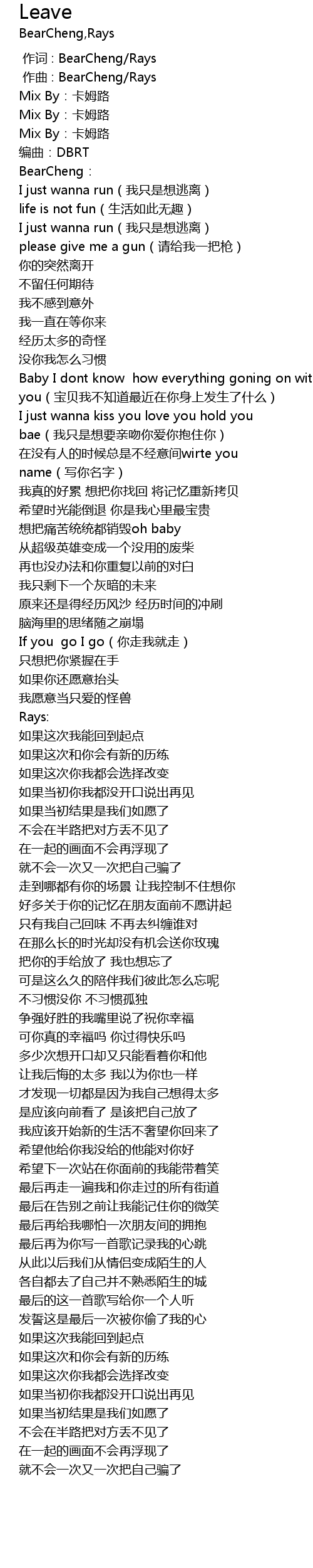 | [00:00.000] | 作词 : BearCheng/Rays |