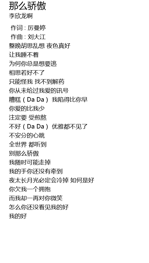 | [00:43.490] | 不好(Da Da) 优雅都不见了 |