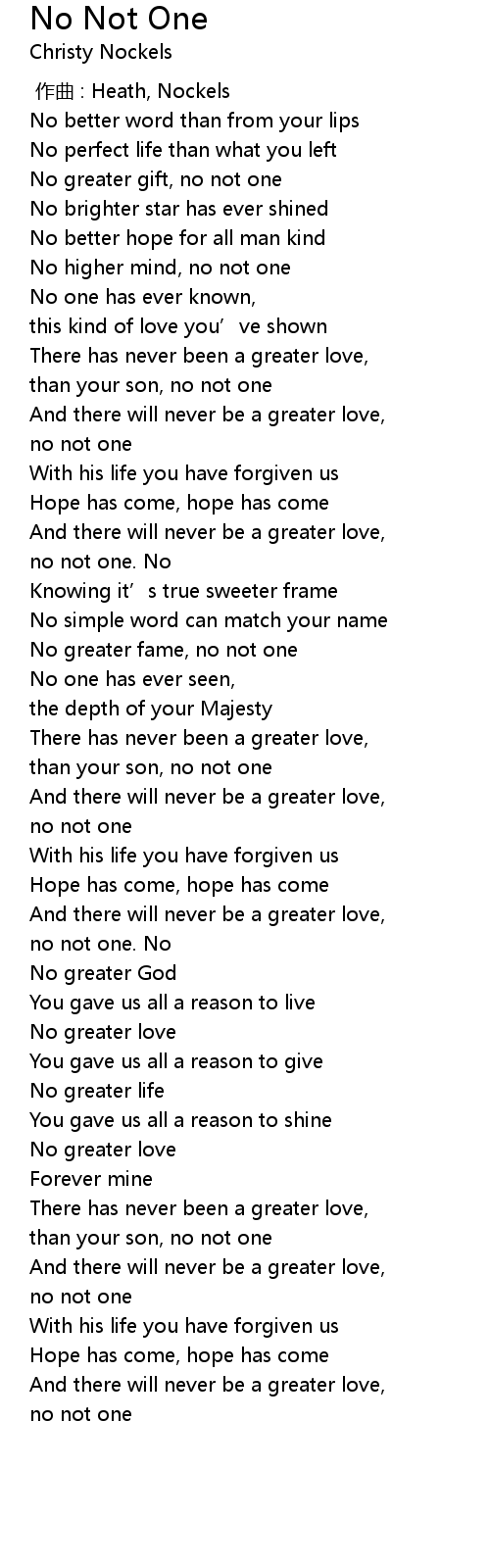 | [00:54.490] | And there will never be a greater love, |