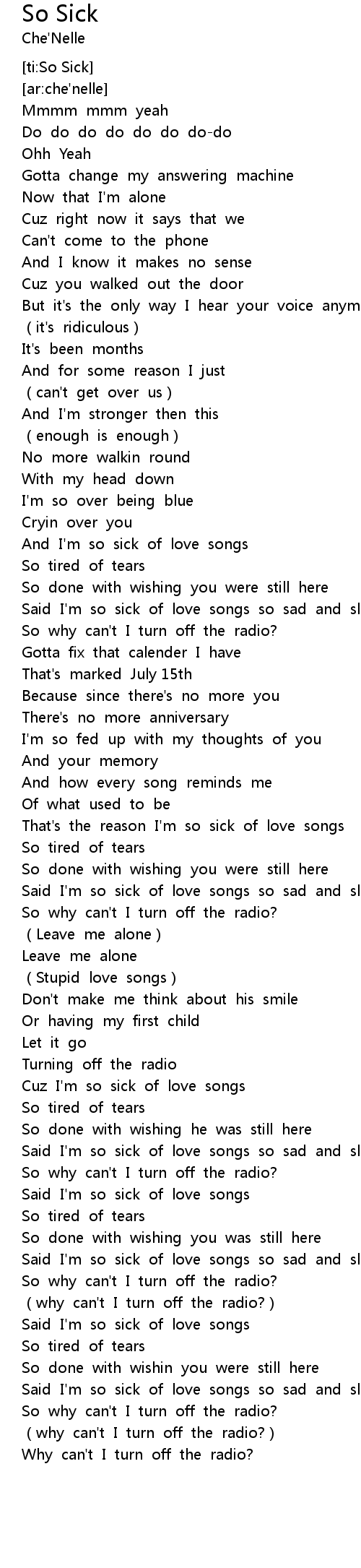 | [02:07.24] | Cuz I'm so sick of love songs |