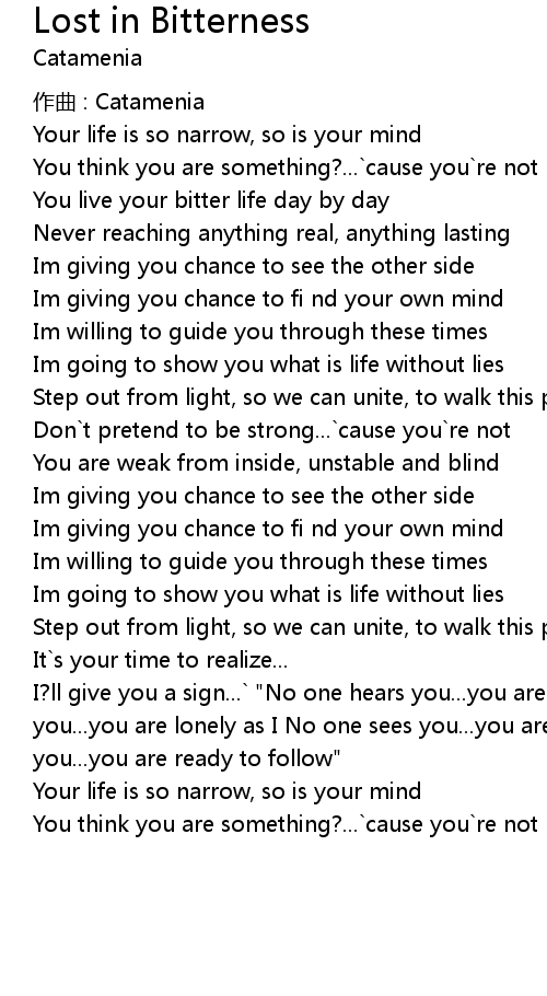 | I?ll give you a sign...` "No one hears you...you are silent as I No one near you...you are lonely as I No one sees you...you are invisible as I No one needs you...you are ready to follow" | |