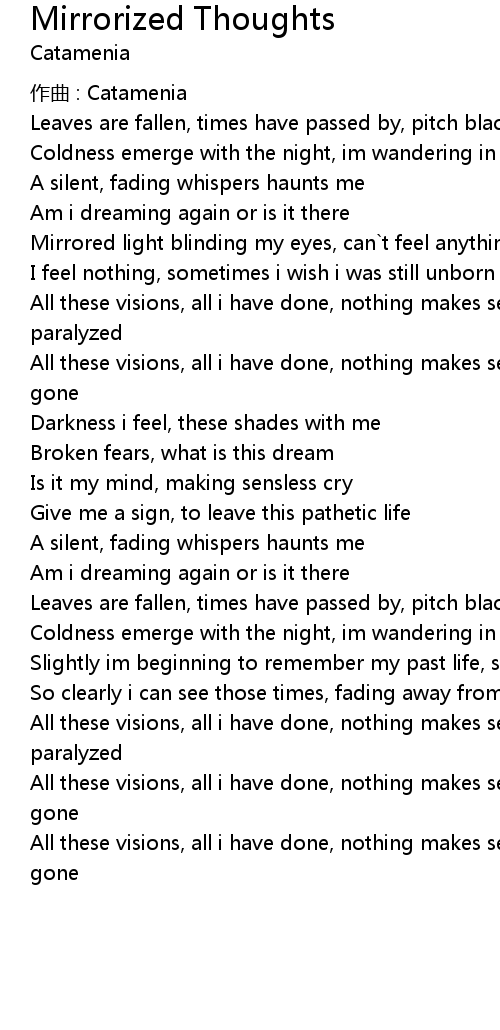 | Leaves are fallen, times have passed by, pitch black moon stares from the sky | |
