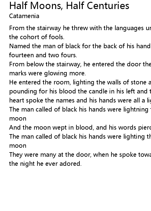 And the moon wept in blood, and his words pierced it`s fragile heart. |