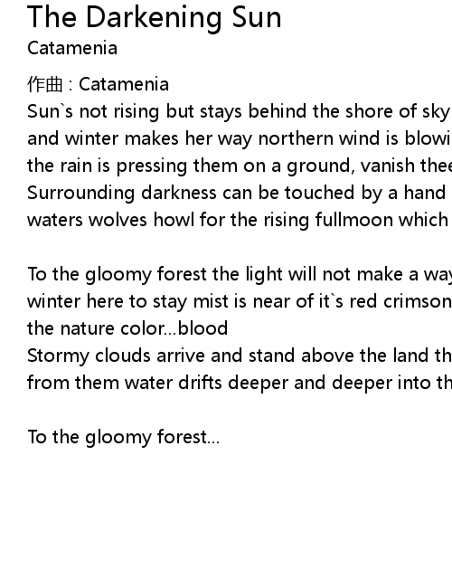 | Surrounding darkness can be touched by a hand coldness achieves the lands and waters wolves howl for the rising fullmoon which reflects light on the lake s dark surface. Chorus | |