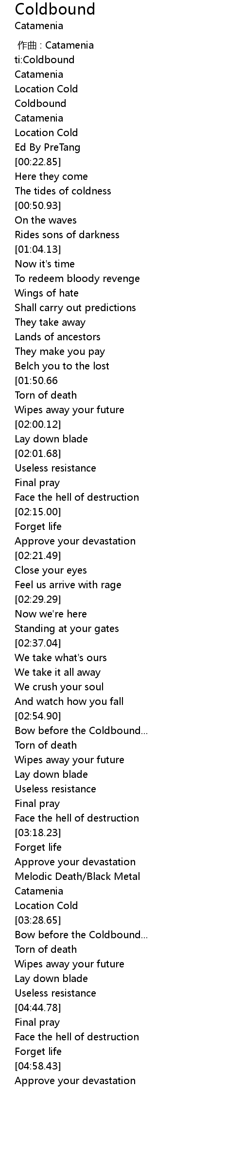 | [00:02.23] | ti:Coldbound |