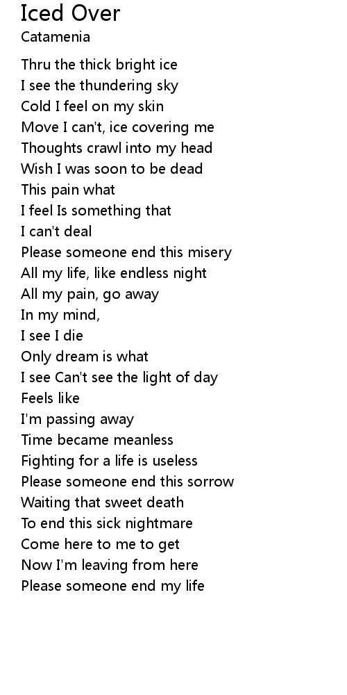 Move I can't, ice covering me |